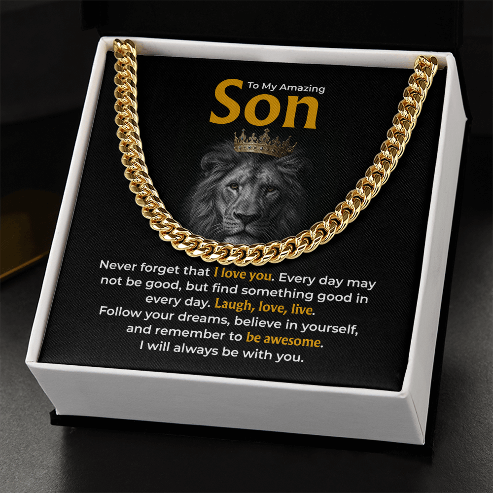 This “To My Amazing Son – Be Awesome, Believe in Yourself” Cuban Chain Necklace is bold, timeless, and powerful, just like him. Paired with a heartfelt message that inspires confidence and reminds him of your unconditional love, it’s the perfect keepsake for any occasion.
